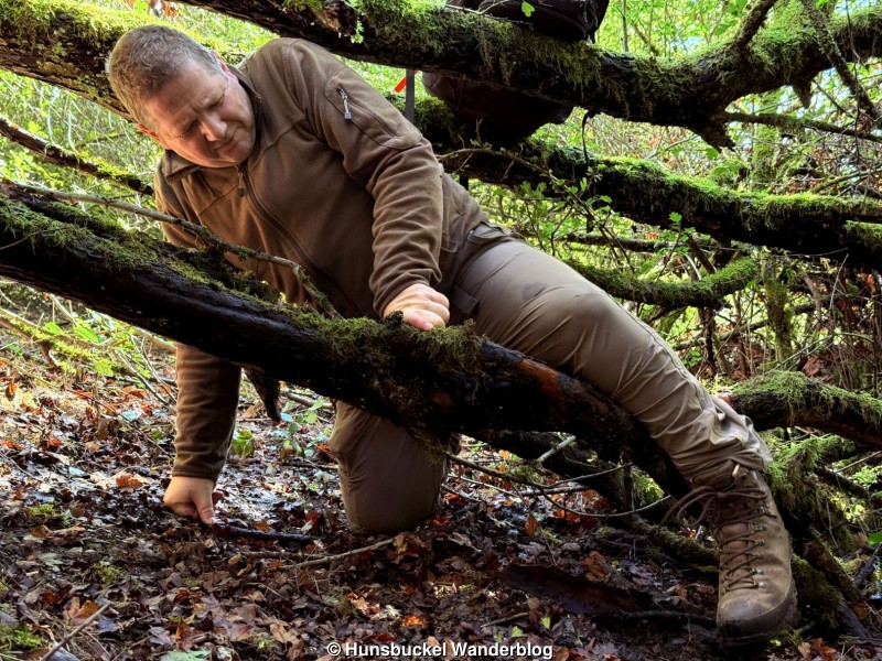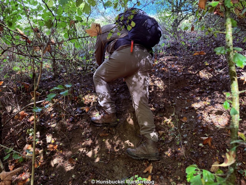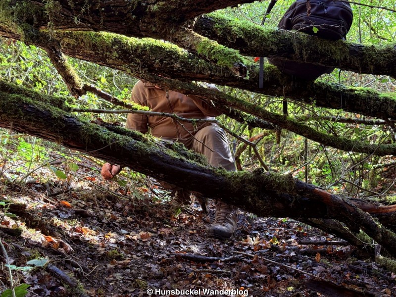 Das Wetter rief uns heute nach Stromberg, wo bei OSM auf dem Hunsfels, dem vom Steinbruch abgefressenen Berg, ein Weg mit der Notiz, ob dieser nicht weitergeht, versehen ist. Auf dem Satellitenbild war dort eine Wiese zu sehen, de sich trotz steilem Gelände auch gut durchqueren lies. Der verzeichnete Feldweg ist dagegen brutal zugewachsen und praktisch unpassierbar, wenn man normal denkende Menschen befragt... 🤪😂🤣
